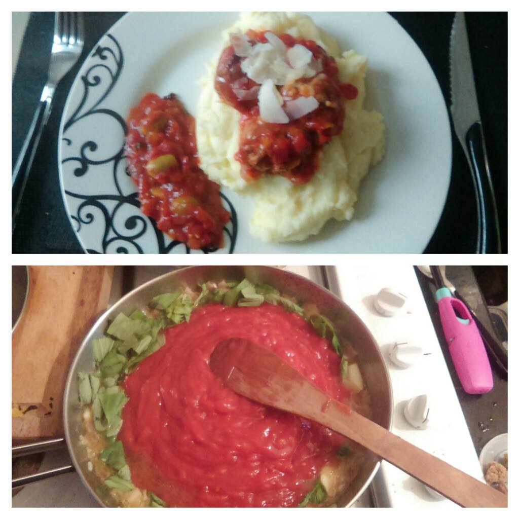 Pour la sauce tomate, dans une poêle faire chauffer 2 cuillères à soupe d’huile d’olive