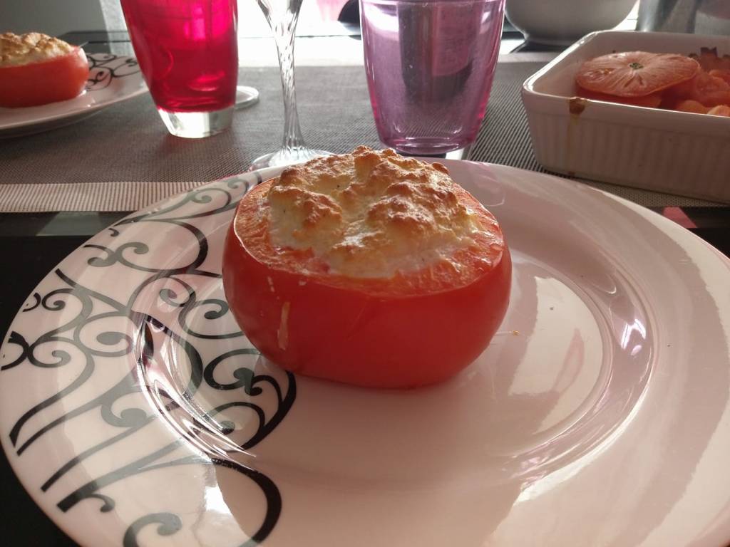 Vider les tomates de l’eau qu’elles auront rendu, les remplir au 3/4 de la préparation