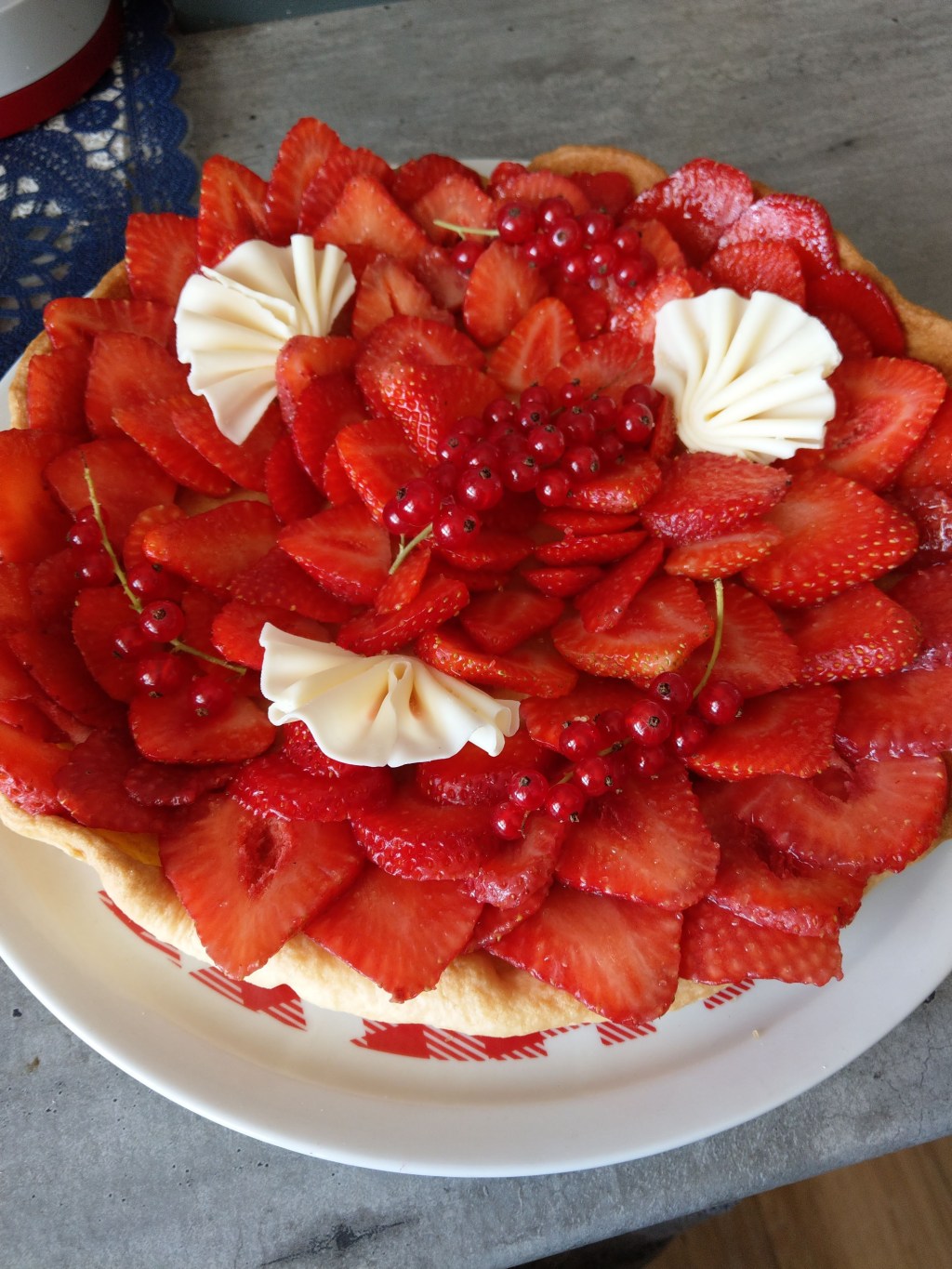 Vous pouvez décorer avec des groseilles et du chocolat blanc.