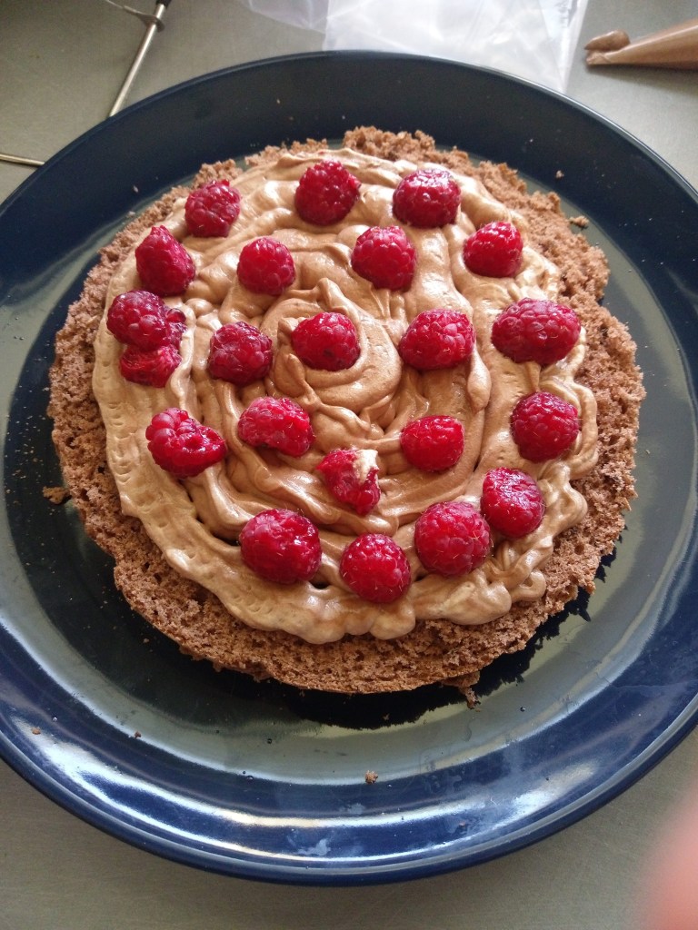 Imbiber avec un pinceaux d’eau de vie à la framboise ou de sirop de framboise dilué dans un peu d’eau