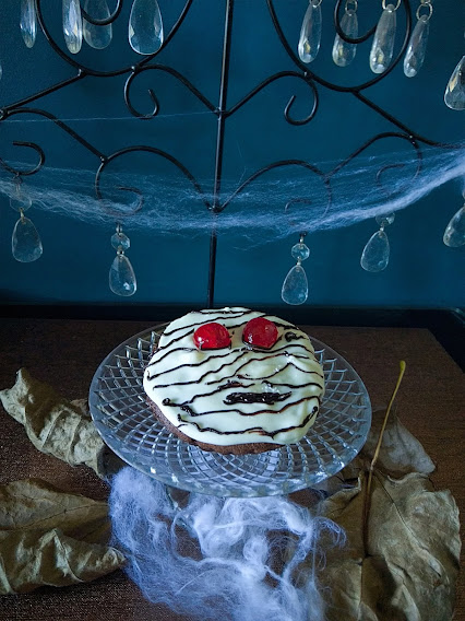 Décorer en faisant les 2 yeux avec des demies cerises confites