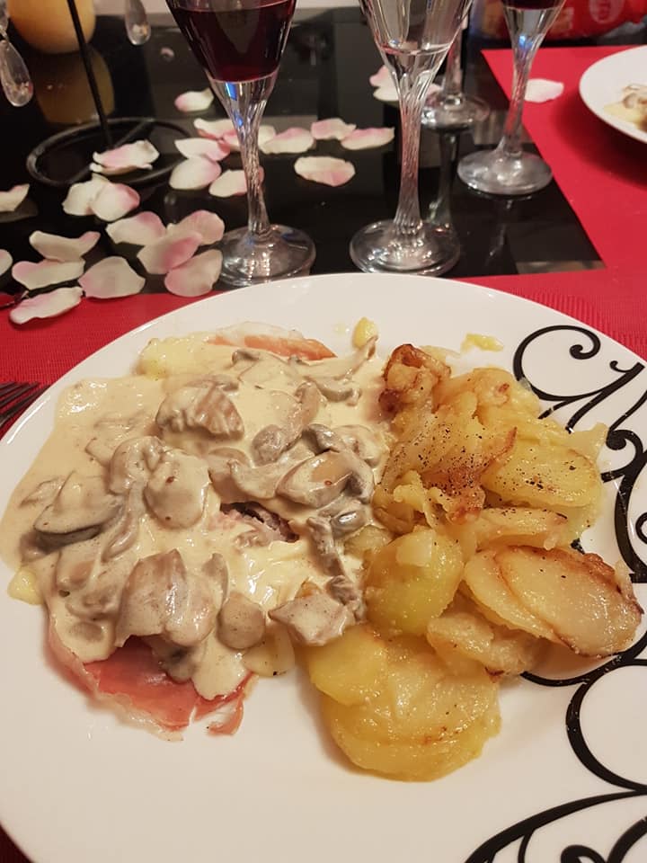 Poulet chasseurCourgettes farcies au veauFilet de veau poêlé