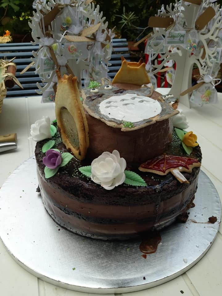 Pièce monté génoise chocolat, pana cotta chocolat et entremet glacé chocolat Thème Totoro